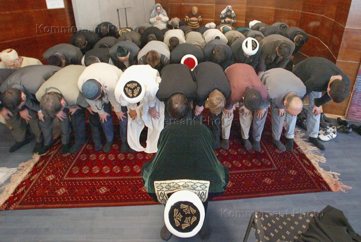 Научно-практическая конференция совета муфтиев России "Веротерпимость - основа процветания многонациональной России" прошла в зале "Вечерний космос" гостиницы "Космос". Конференция приурочена к 230-летию выхода указа Синода о веротерпимости. Участники конференции совершают намаз.