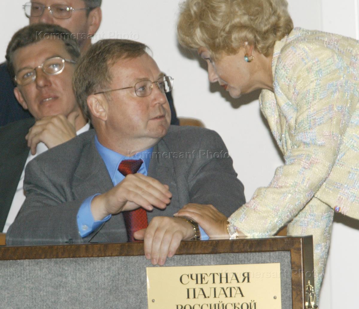 Председатель Счетной палаты России Сергей Степашин (в центре) и представитель в Совете Федерации (СФ) России от Великого Хурала Республики Тыва Людмила Нарусова (справа) на очередном заседании Совета Федерации России.