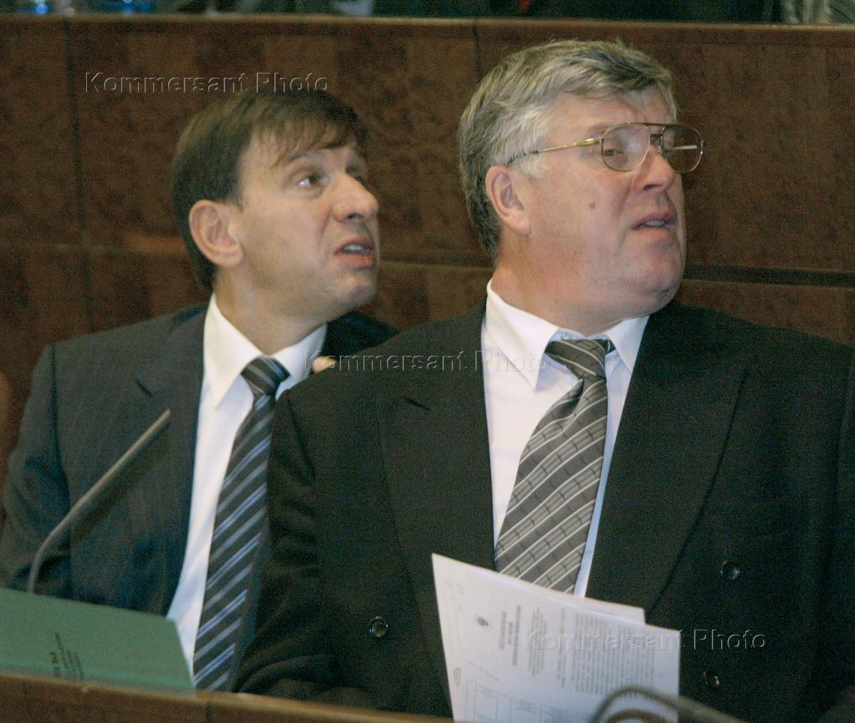 Председатель комитета Совета Федерации России (СФ) по делам СНГ Вадим Густов (справа) на очередном заседании СФ.