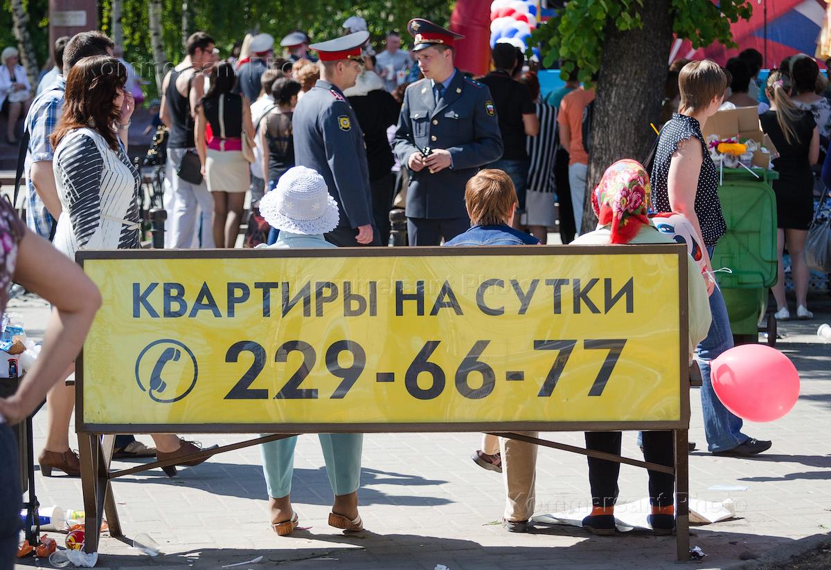 Жанровая фотография. Рекламное объявление на скамейке "Квартиры на сутки".