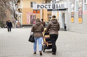 Жанровая фотография. Плакат "Кредит и лизинг" на фасаде банка "Рост банк".