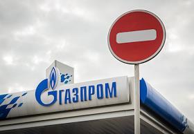 Жанровая фотография. Знак "Въезд запрещен" (кирпич) на фоне вывески АЗС "Газпром".