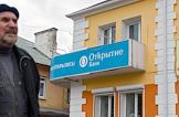 Жанровая фотография. Растяжка банка "Открытие" на балконе дома - "Мы открылись".
