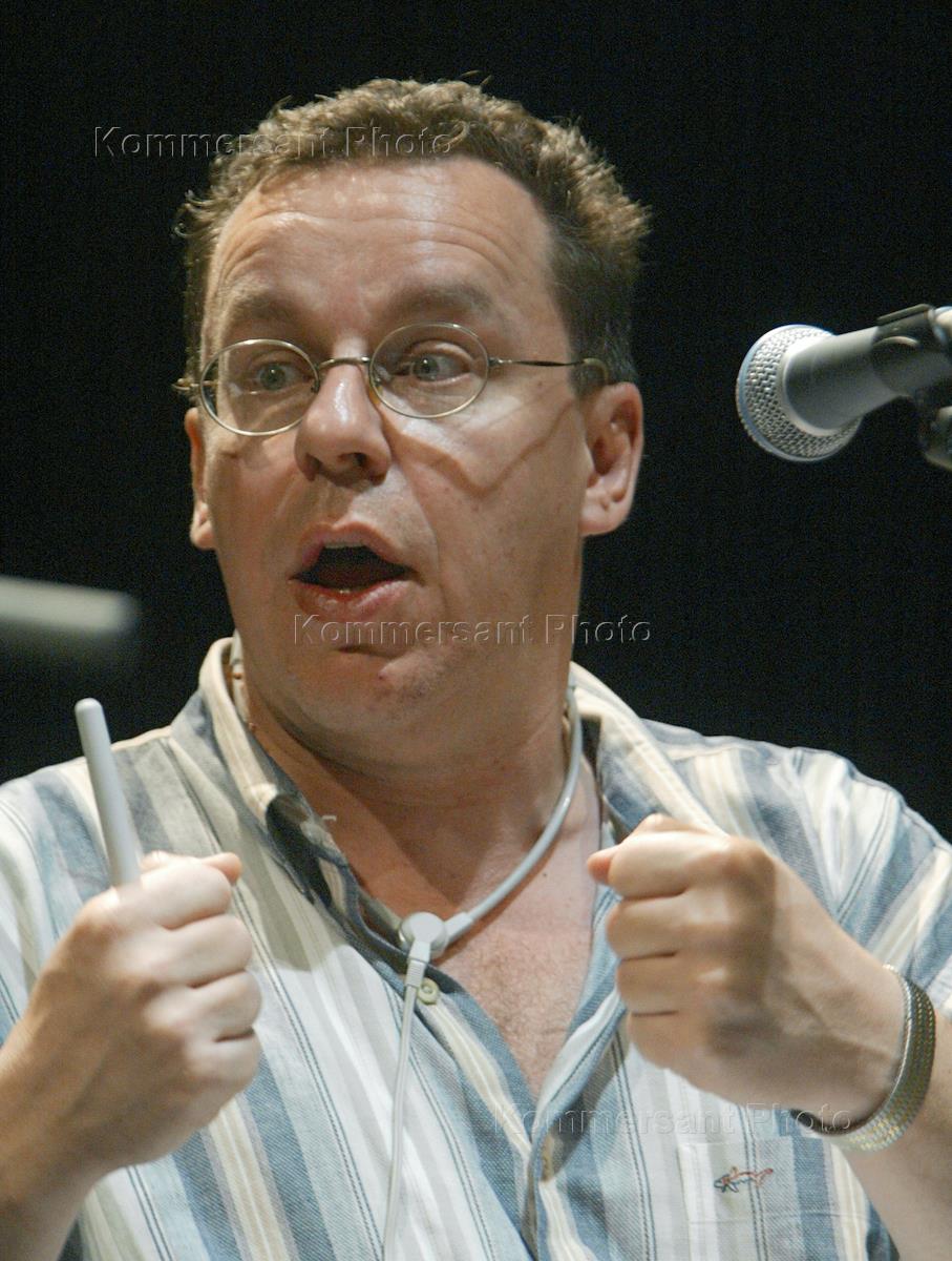 Канадский драматург Рене Даниеэль Дюбуа во время участия в заседании Российско-канадского литературного "круглого стола" "Словесность формирует идентичность?". Заседание прошло Центре имени Мейерхольда.