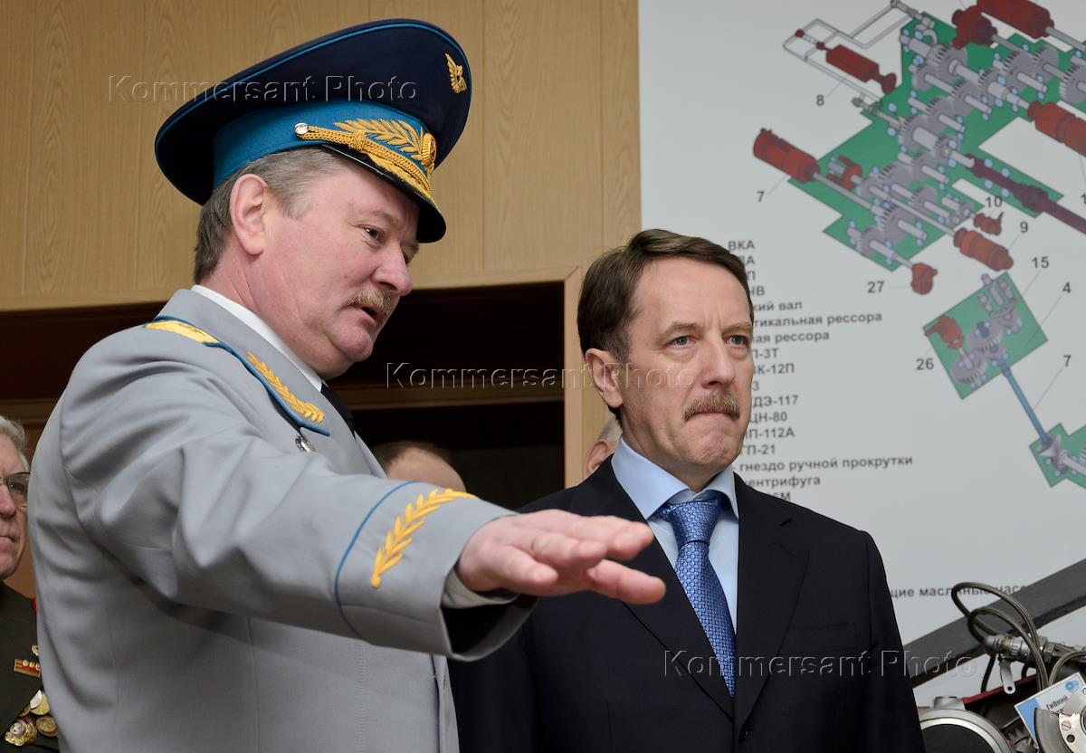Губернатор Воронежской области Алексей Гордеев (справа) и начальник Военного авиационного инженерного университета (ВВАИУ) генерал-майор Геннадий Зибров во время посещения университета.