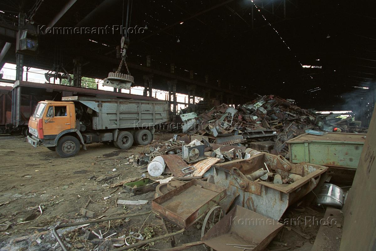 "Vtormet" plant in Bataisk. Workers transport scrap.