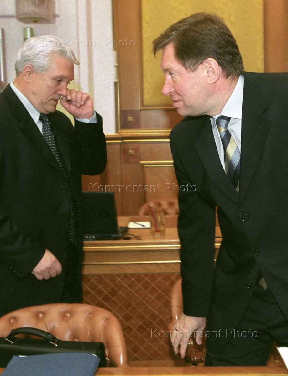 Заместитель председателя Правительства России по жилищно - коммунальному комплексу Владимир Яковлев (слева) и заместитель председателя Правительства России, министр финансов Алексей Кудрин на очередном заседании Правительства.