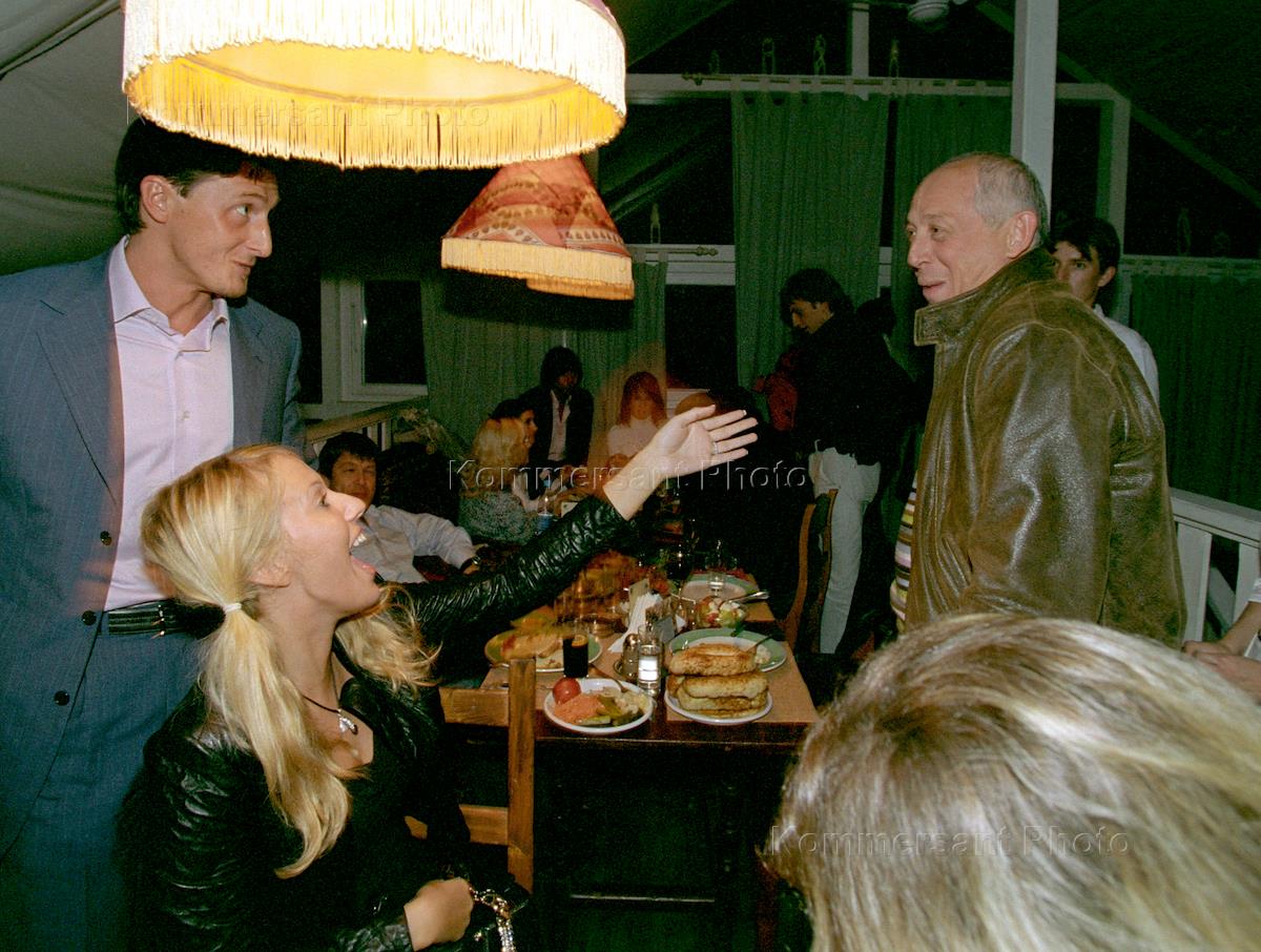 Ksenia Sobchak (left), daughter of the late St.Petersburg mayor Anatoly Sobchak, and Moscow News publishing company President Alexander Vaynshteyn (right) fool around at the end of the season party at the Dacha Gallery.