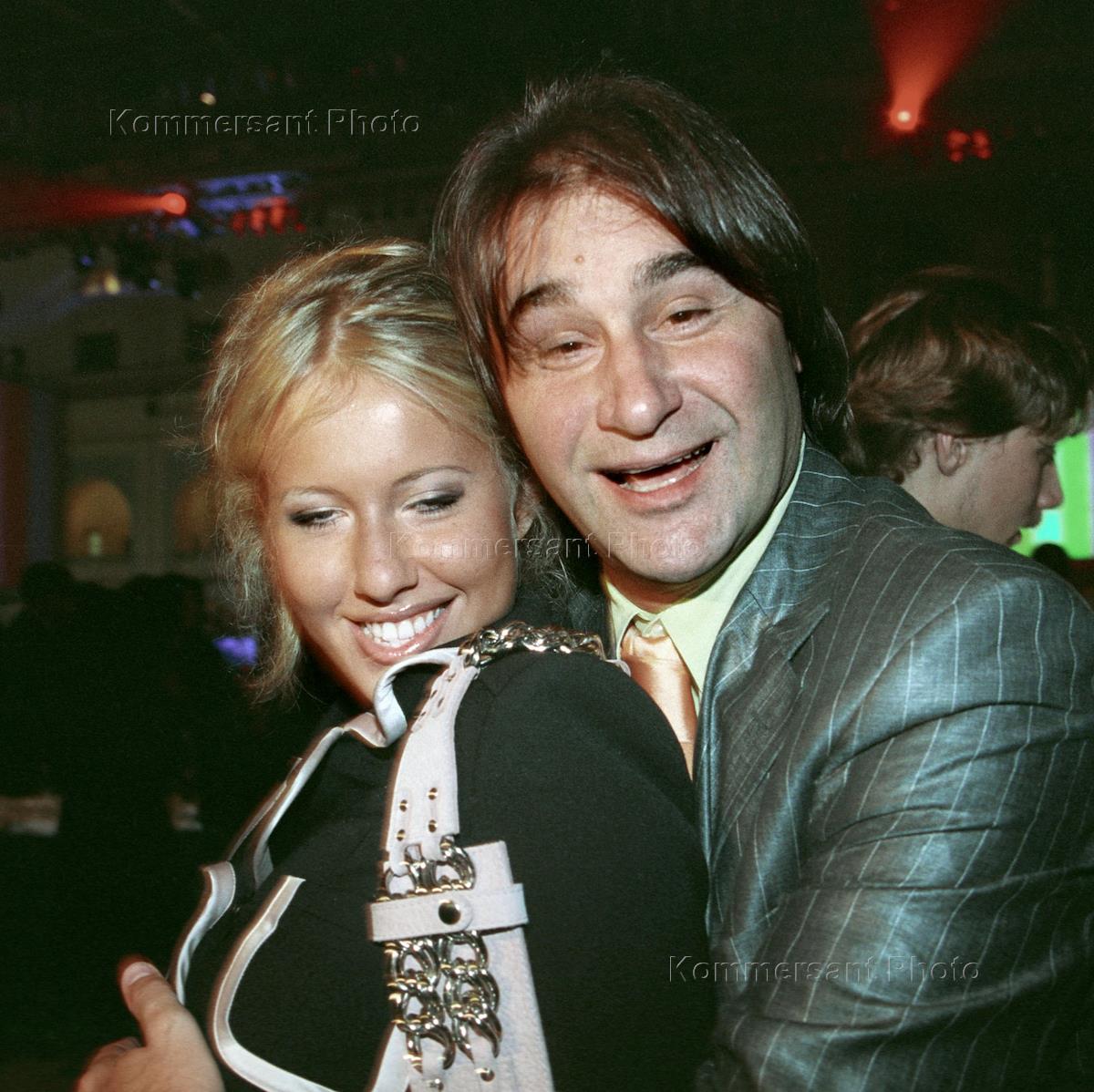 Film producer Pavel Vashchekin (right) hugs the late St.Petersburg Mayor Anatoly Sobchak's daughter Ksenia (left) during presentation of the Wild Orchid autumn-winter collection in the Gostinny Dvor ('Merchants Yard') shopping centre.