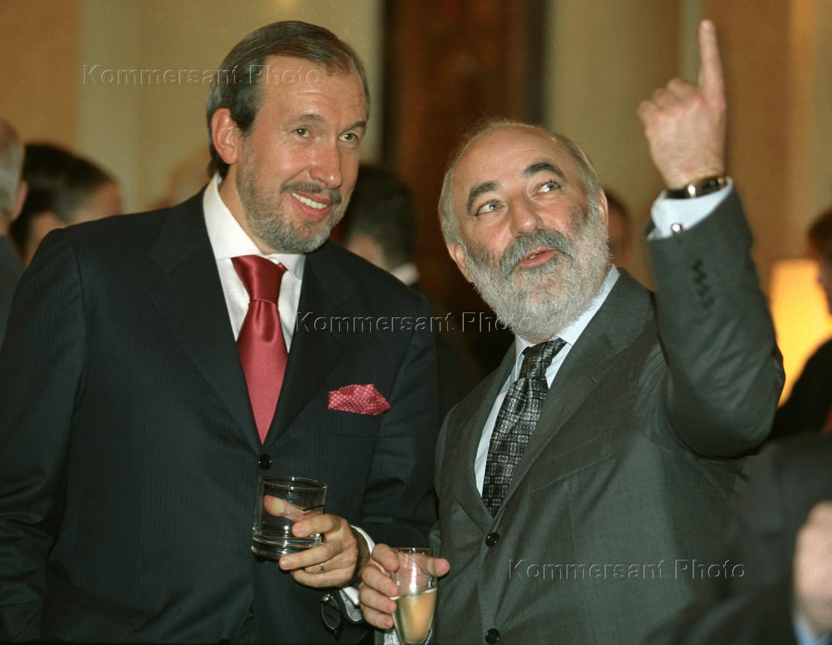 Председатель совета директоров "Ренова" Виктор Вексельберг (слева) на Коктейле, по случаю выставки изделий "Damiani", в резиденции посла Италии.