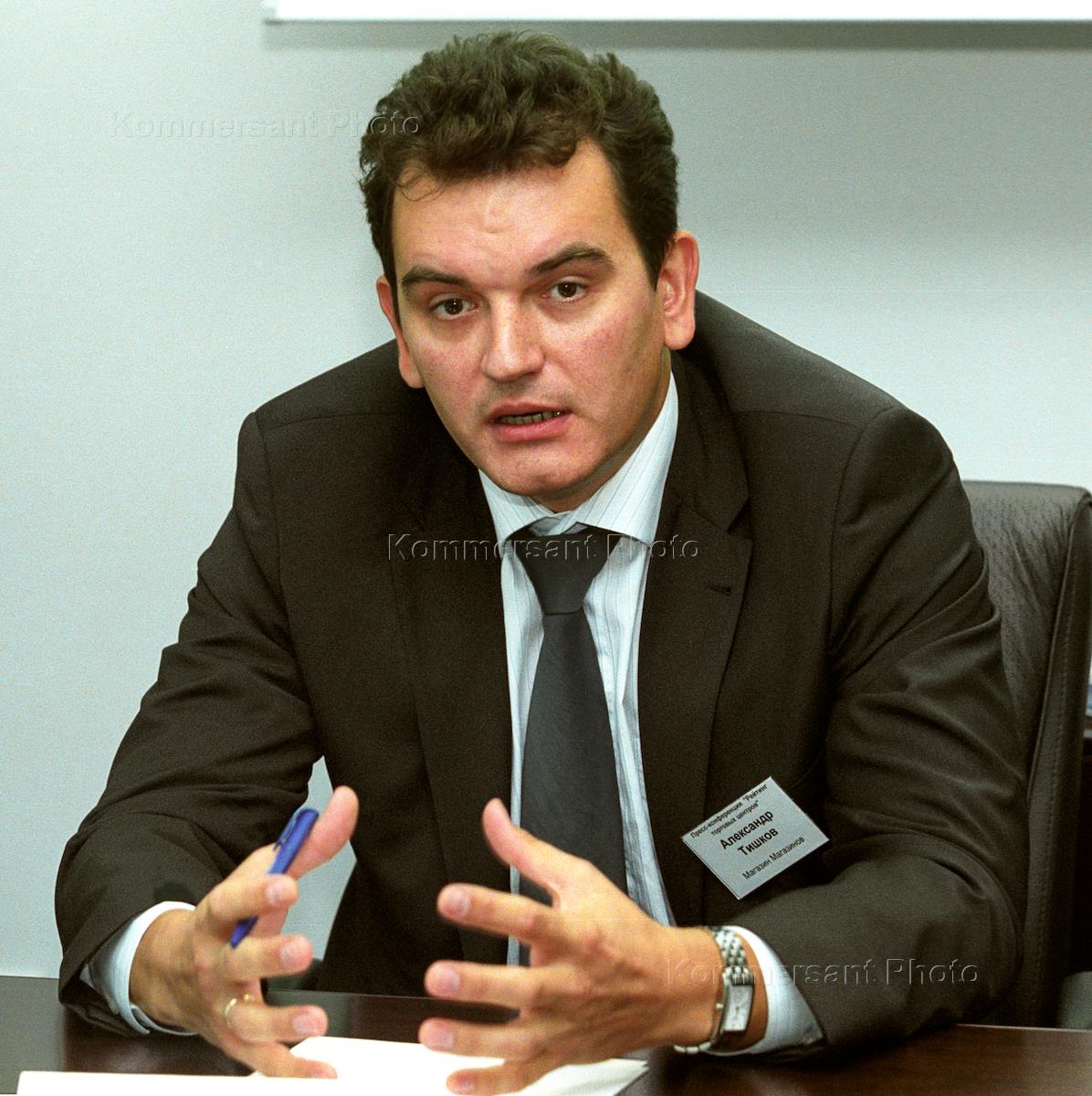 Director of Magazin Magazinov company Alexander Tishkov speaks to the media at the news conference headlined 'Shopping Centrees Ratings'. The conference was held in the Aeroport Gallery.