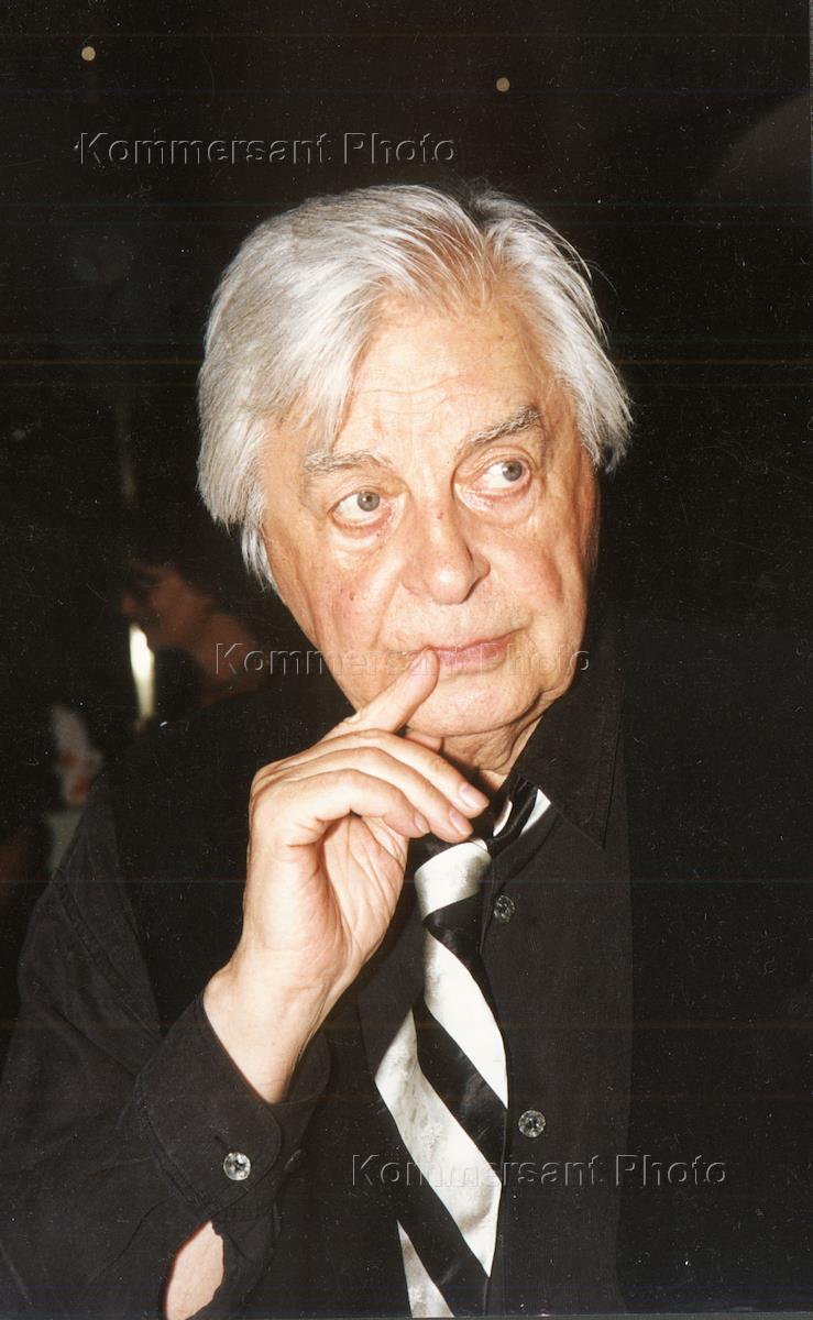 Кинорежиссер Эльдар Рязанов в фойе театра "На Таганке".