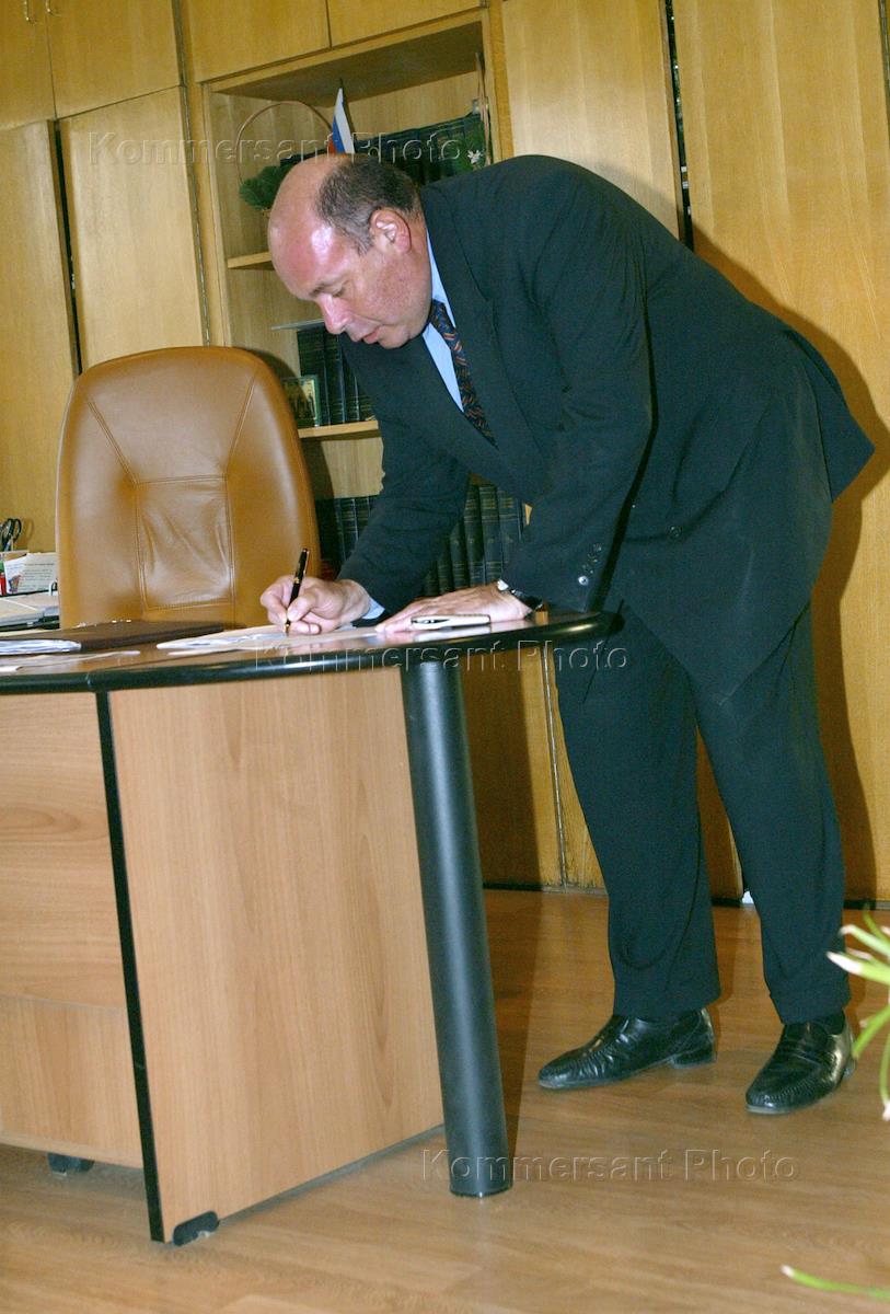 Russian Culture Minister Mikhail Shvydkoi (left) award artist Alexander Semchev (right) at the ceremony of the State award of the culture and art persons. The ceremony was held in the Russian Culture Ministry.