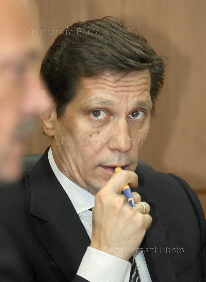 Председатель Комитета Государственной Думы России по бюджету и налогам Александр Жуков во время заседания экономического совета московского отделения партия "Единая Россия" на тему:"О региональном аспекте проекта федерального бюджета на 2004 год и его влияние на финансовое состояние Москвы". Заседание состоялось в здании управы "Дорогомилово".