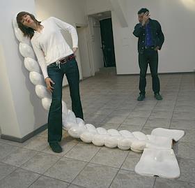 Visitors of the Viktor Olympiev exhibition "Olegu" that was held in the Marat Ghelman's gallery.