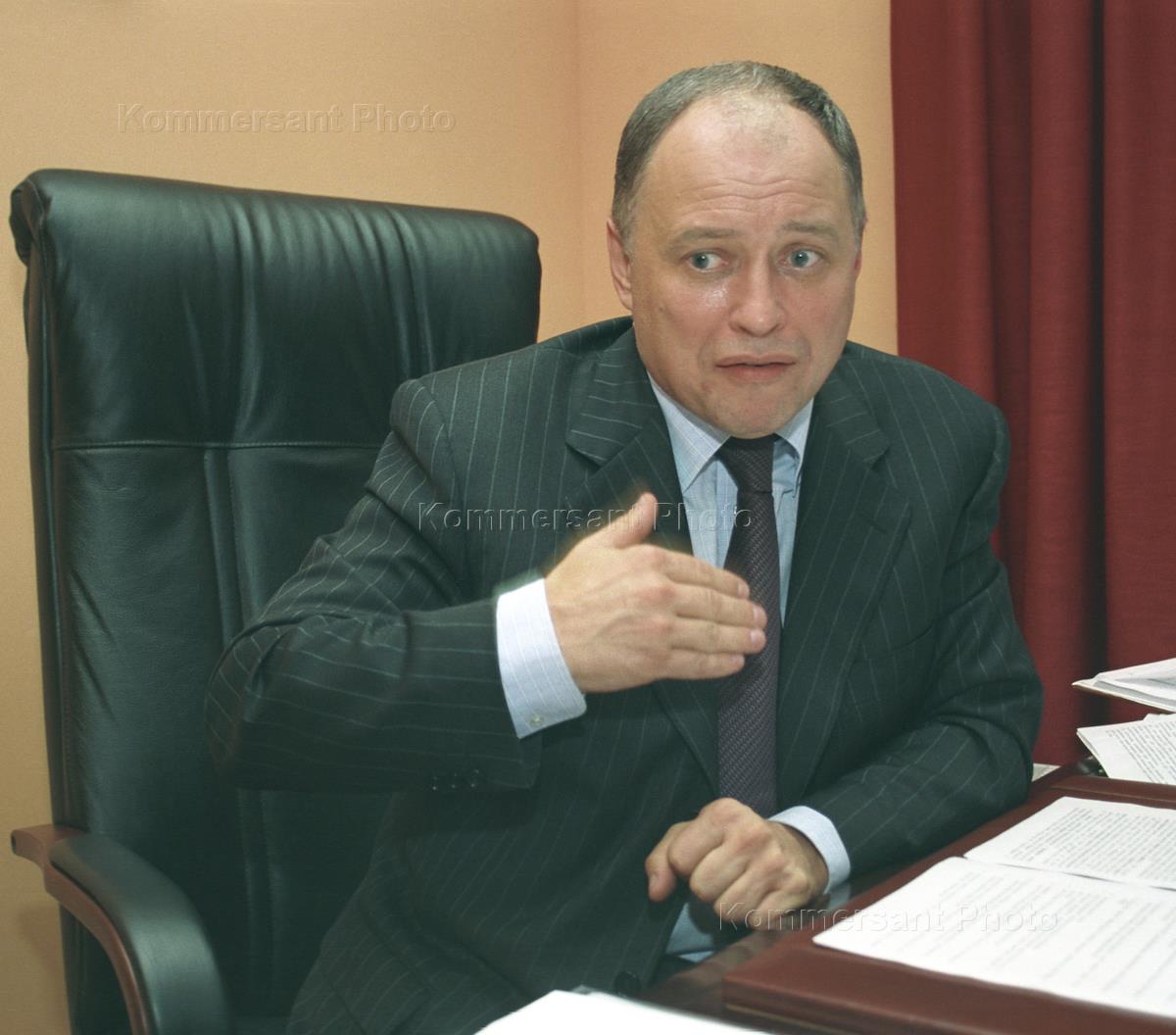President of the small and medium businesses association OPORA ('Support) Sergey Borisov is interviewed in his office.
