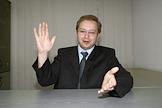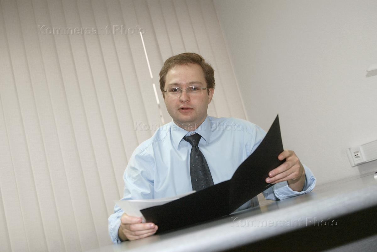 Head of the RosBank trust operations department Dmitry Shumilov is interviewed in his office.