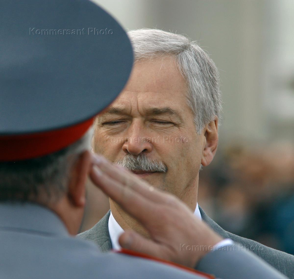 Russian Interior Minister Boris Gryzlov (left) takes part in the Russian Interior Ministry (MVD) University graduation and officers commissioning ceremony.