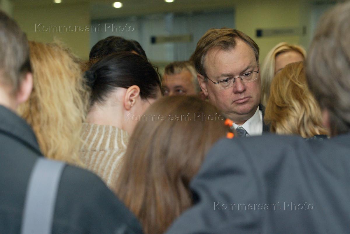 Президент, председатель правления "Внешторгбанка" (ВТБ) Андрей Костин перед началом церемонии открытия ипотечного центра ВТБ в бизнес - центре "Чайка-Плаза".
