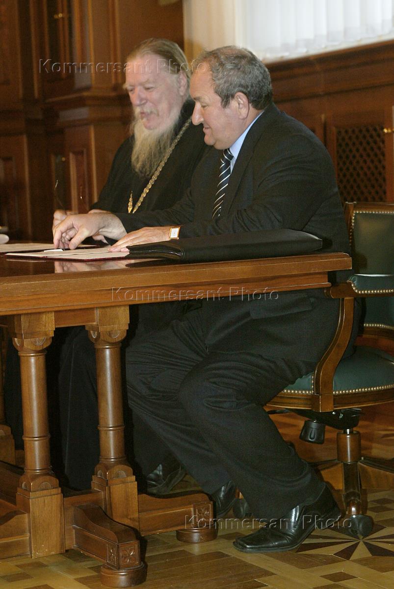 Presidential advisor on the cossack policies, Colonel General Gennady Troshev (right) meets representatives of the Russian cossack communities and organisations in the Christ the Saviour Cathedral.