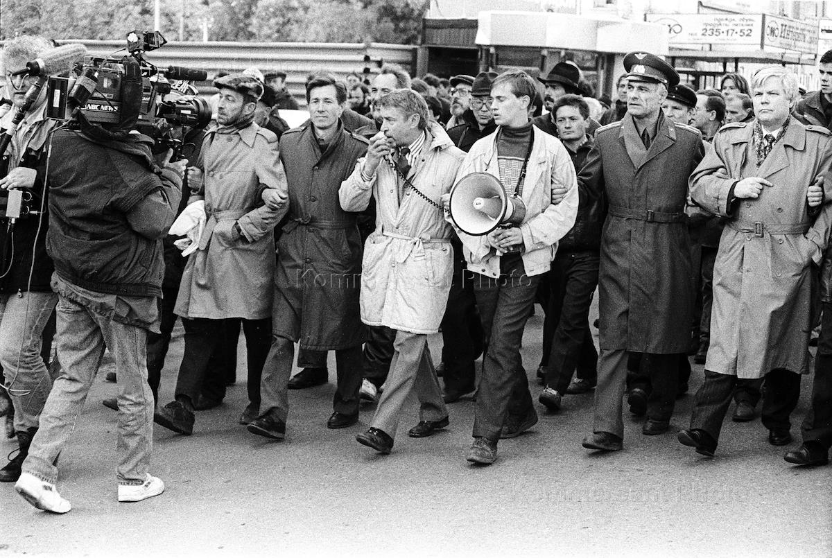 Supporters of the Supreme Council gather around the Moscow 'White House' (seat of the federal parliament) during the October 1993 armed conflict between the then President Boris Yeltsin and the Council leadership.