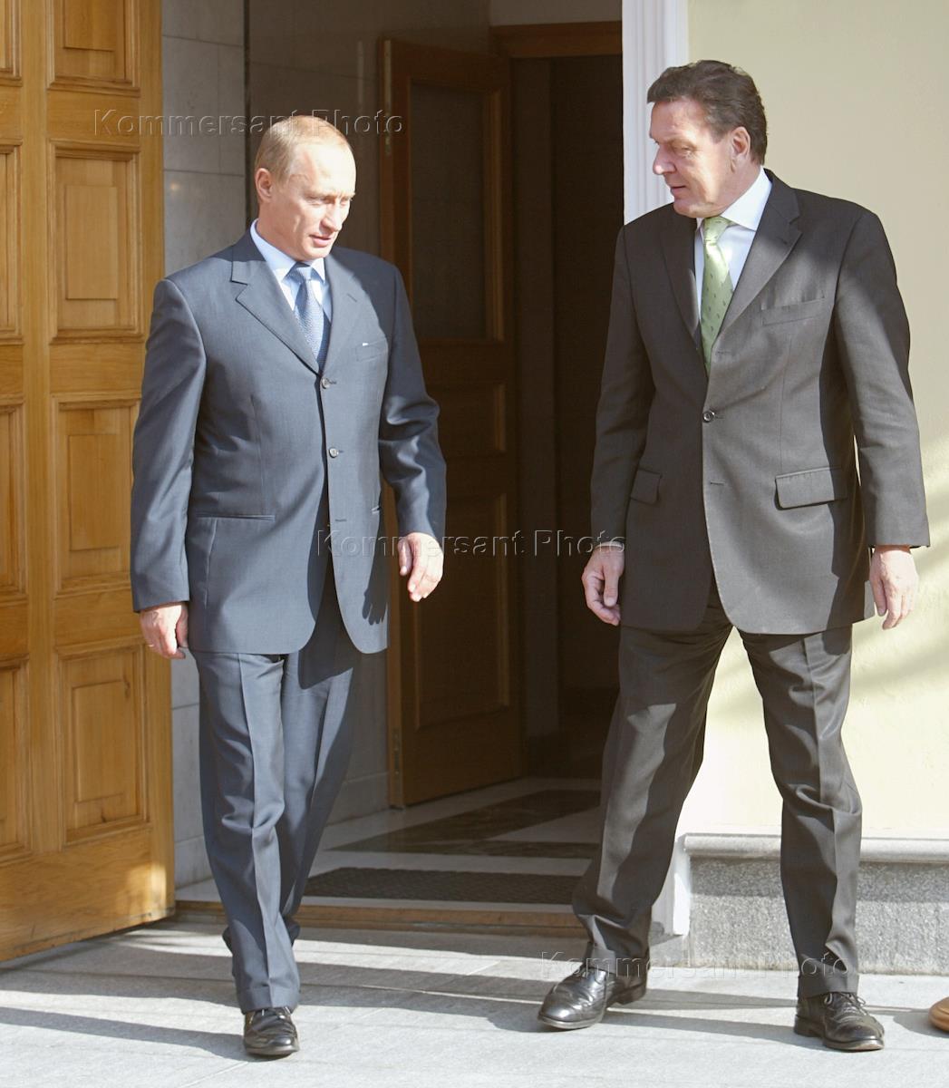 The German chancellor Gerhard Schroeder (right) and russian president Vladimir Putin (left) participated in the 6th russian-german concultations where were discussed problems of international politics and development of the russian-german relationship.