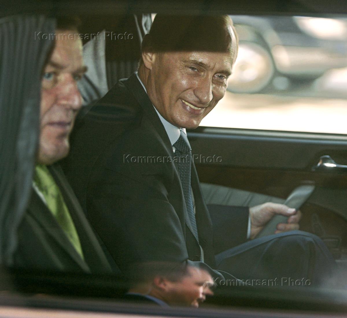 Президент России Владимир Путин (справа) и федеральный канцлер ФРГ Герхард Шредер (слева) во время проведения шестых межгосударственных российско-германских консультаций. В центре внимания В.Путина и Г.Шредера развитие германо-российского сотрудничества в области экономики и политики безопасности, вопросы международной политики.