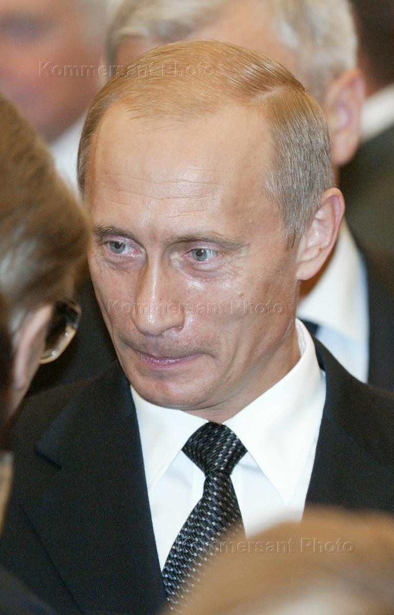 Президент России Владимир Путин (слева) и исполняющий полномочия президента Чеченской республики Ахмат Кадыров (справа) на церемонии награждения государственными наградами России ученых, политиков и государственных деятелей. Церемония состоялась в Екатерининском зале Большого Кремлевского дворца. Путин Владимир, Президент России
