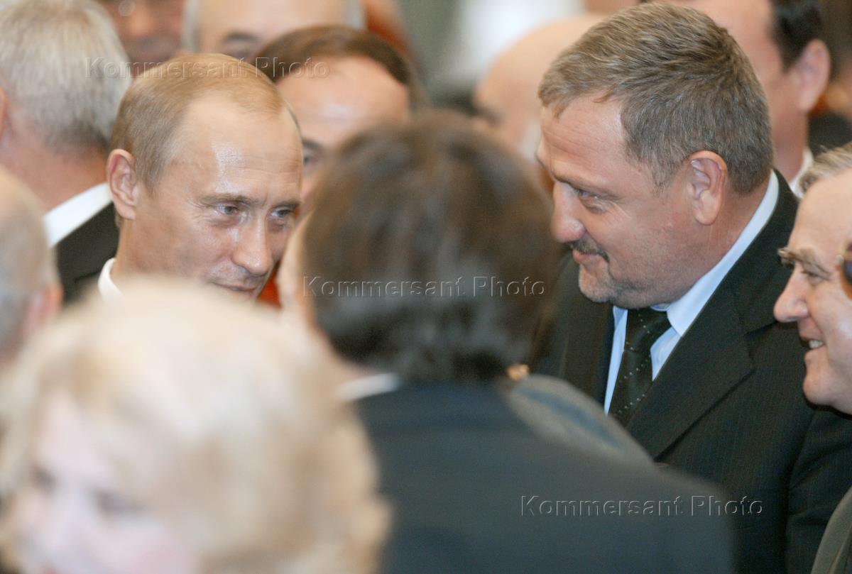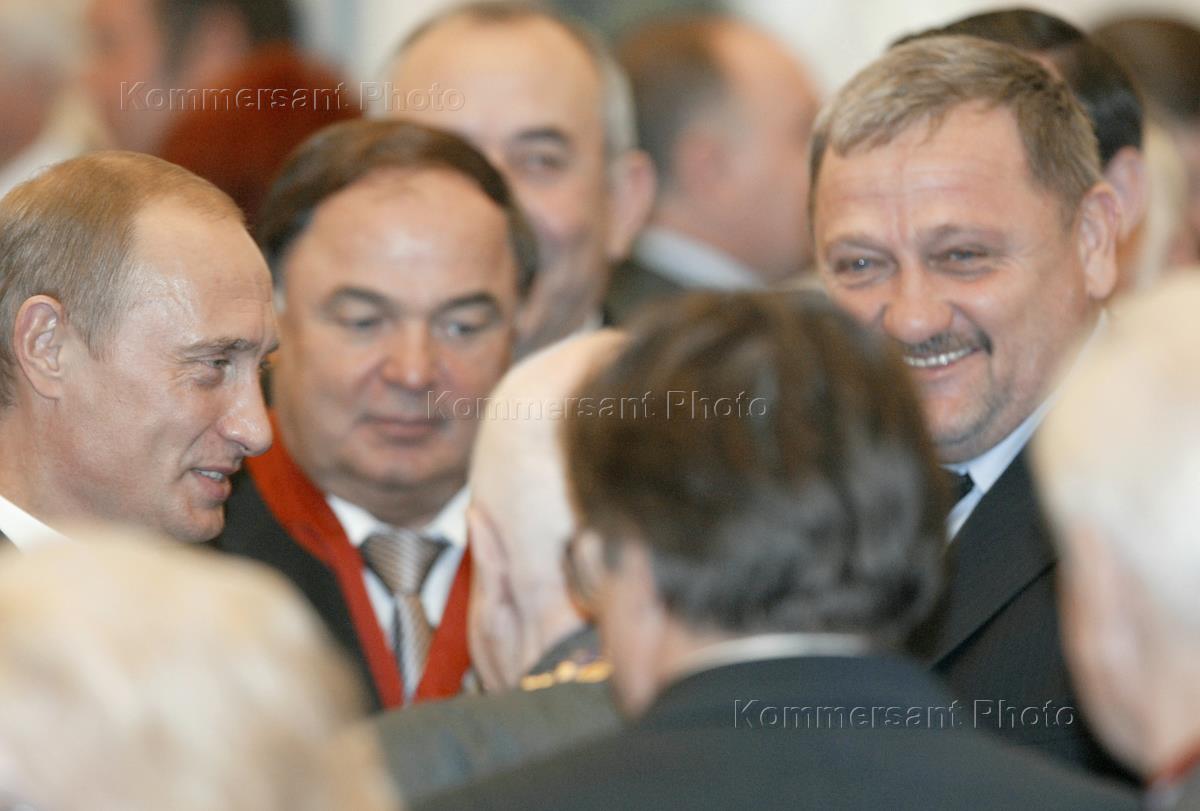 Мэр Москвы Юрий Лужков (слева) и исполняющий полномочия президента Чеченской республики Ахмат Кадыров (справа) на церемонии награждения государственными наградами России ученых, политиков и государственных деятелей. Церемония состоялась в Екатерининском зале Большого Кремлевского дворца.