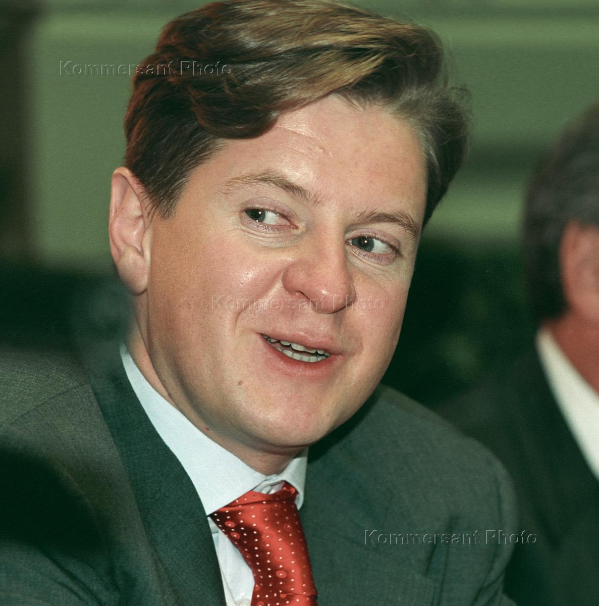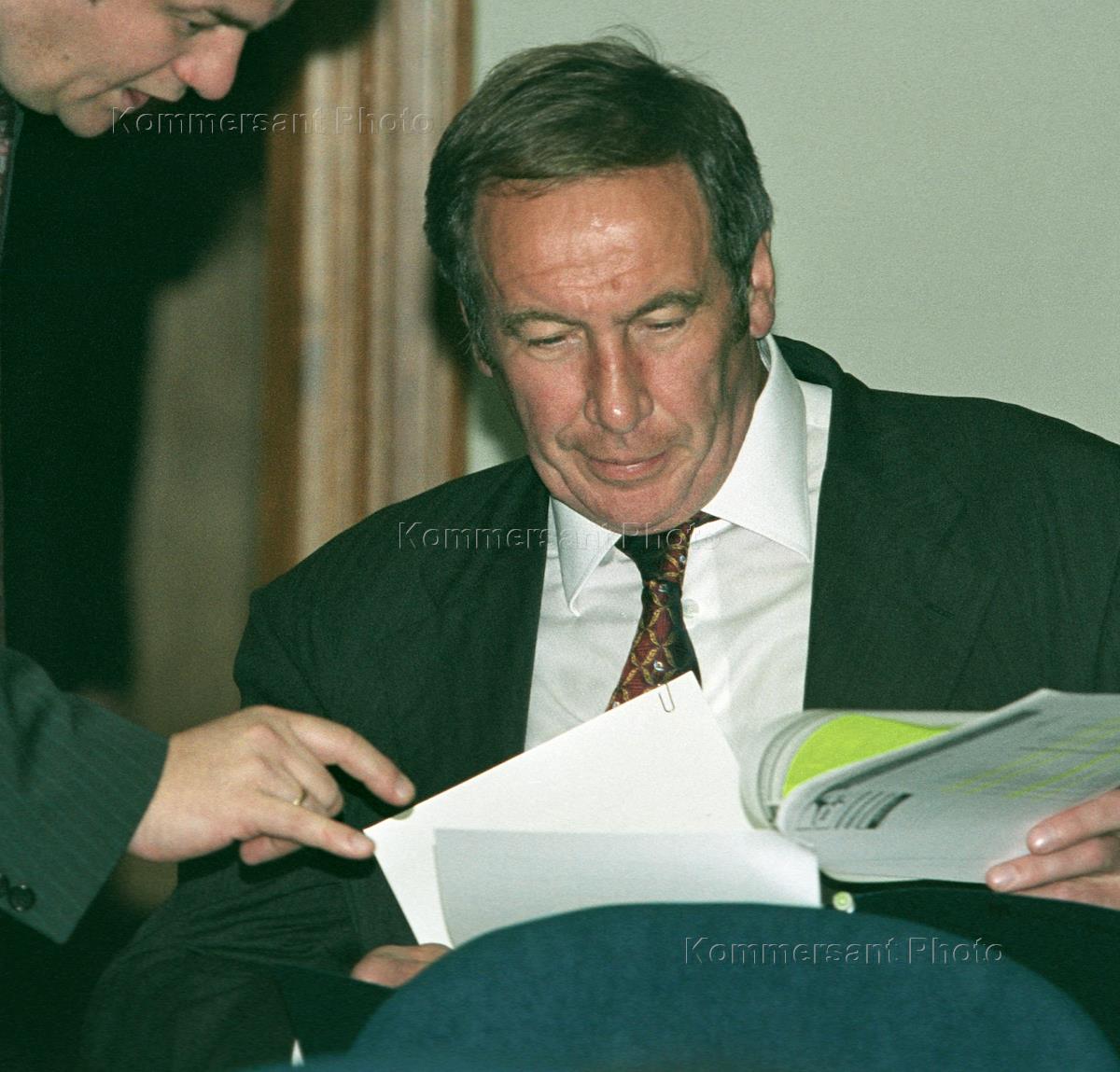 Президент "Банка Москвы" Андрей Бородин во время пресс-конференции, на которой впервые был объявлен размер призового фонда турнира "Кубок Кремля 2003", и имена теннисистов, заявленных к участию в турнире. Пресс-конференция состоялась в здании "Банка Москвы".