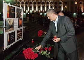 Акция памяти жертв трагических событий в Санкт-Петербурге прошла в Симферополе. Глава Республики Крым Сергей Аксенов во время акции.
