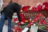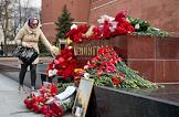Цветы, принесенные москвичами, у мемориала Ленинграда на аллее городов-героев в Александровском саду в знак солидарности с погибшими и пострадавшими от взрыва в метро Санкт-Петербурга.