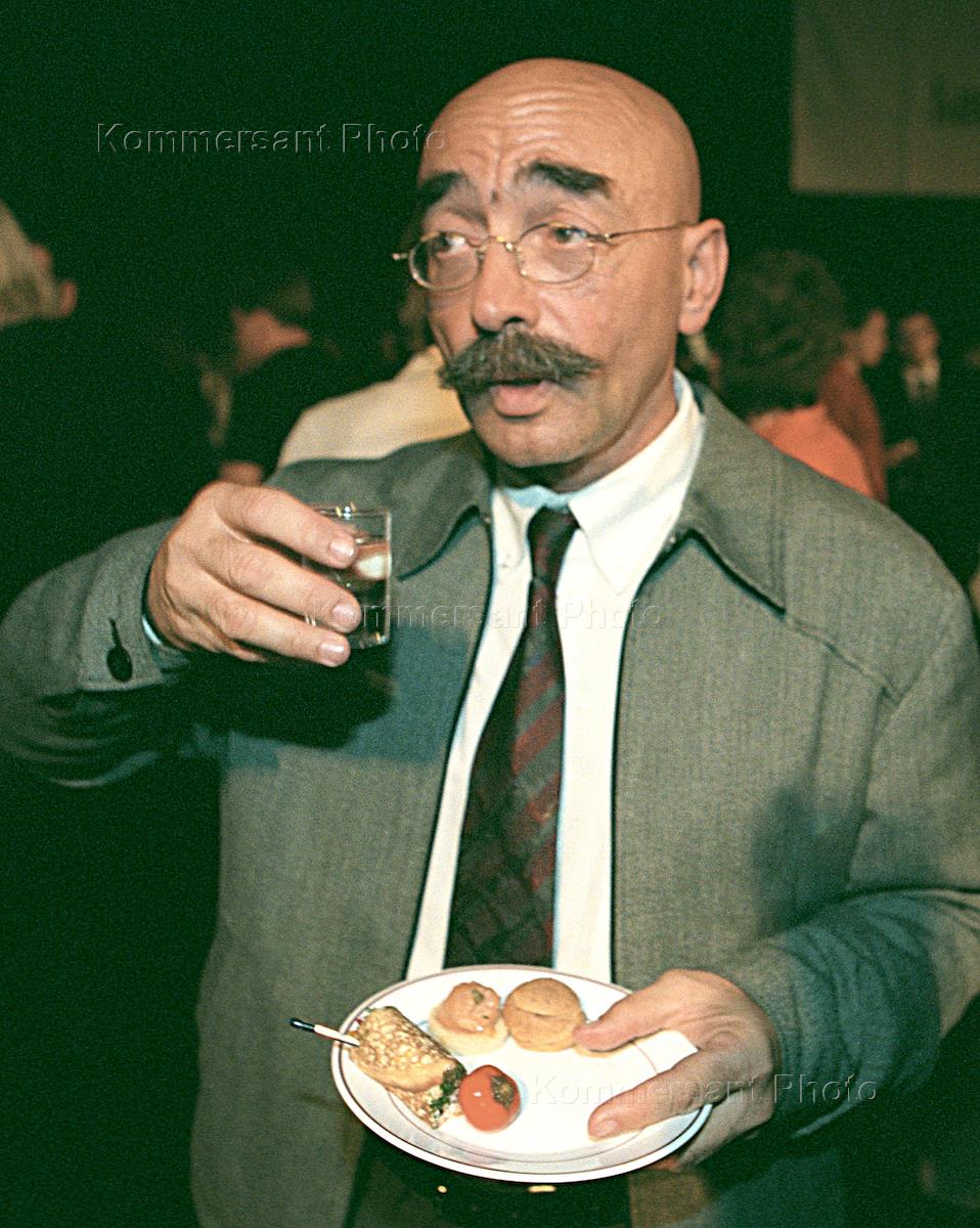 Cartoonist Andrey Bilzho attends the party held to mark the opening of the Kremlin Cup tennis tournament.