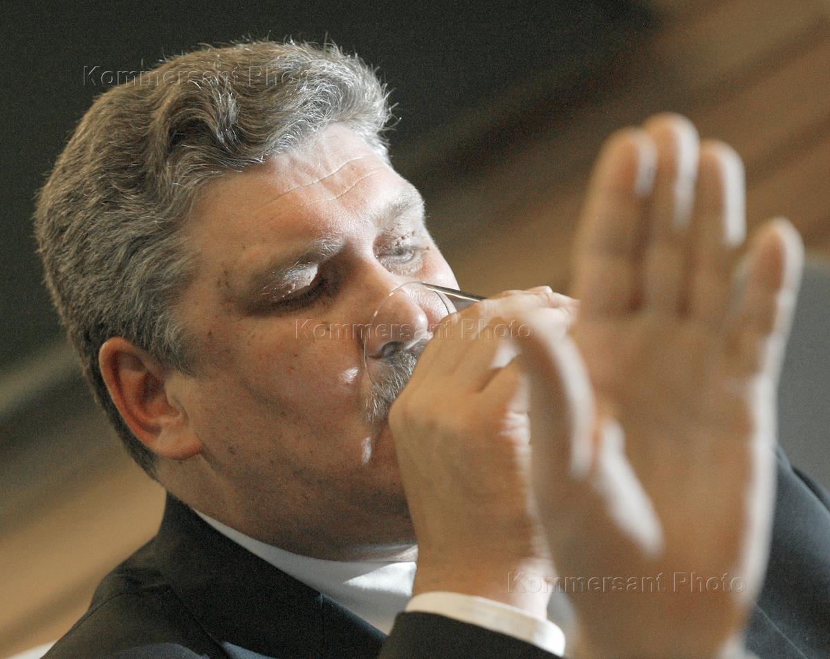 Russian Railway Minister Vadim Morozov is interviewed at the news conference summoned to announce the ministerial plans for the future. The news conference was held in the Raiway Ministry.