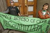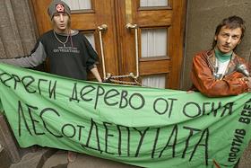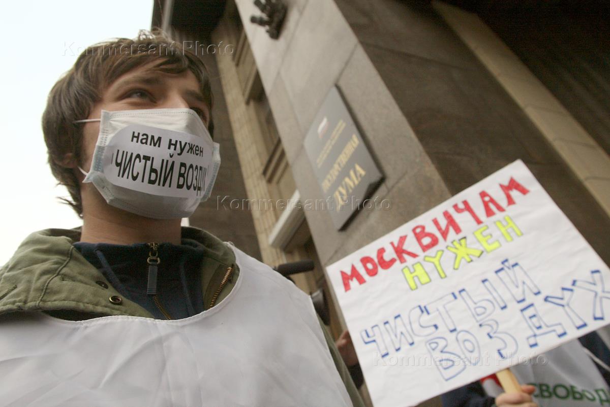 Participants of the rally organised by the "Yabloko" party and ecologic organisations protests against the law that includes amendments to the Forest Code. The rally was held at the State Duma building.