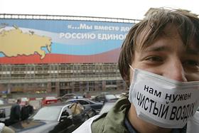 A participant of the rally organised by the "Yabloko" party and ecologic organisations protests against the law that includes amendments to the Forest Code. The rally was held at the State Duma building.