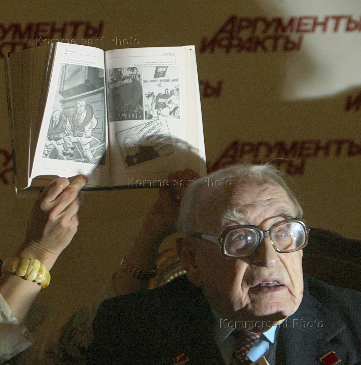 Герой Социалистического труда, лауреат Государственных премий, академик Российской академии художеств, карикатурист Борис Ефимов во время пресс-конференции на тему: "Смена эпох от Николая II до Путина. О жизни и творческих планах". Пресс-конференция состоялась в пресс-центре "АиФ-Новости".