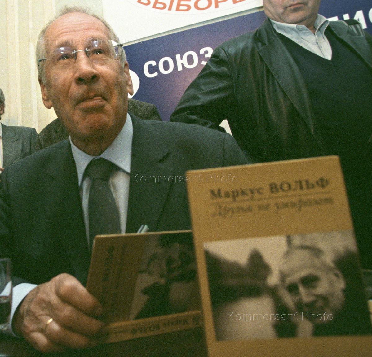 Бывший директор разведки Германской Демократической Республики (ГДР) "Штази" Маркус Вольф во время пресс-конференции в Центральном Доме журналиста.