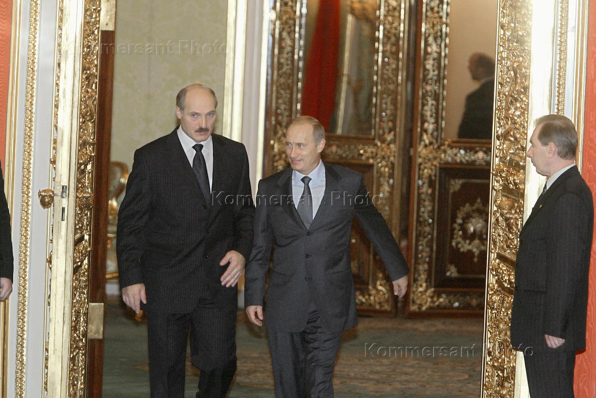 Russian President Vladimir Putin (right), Belorussian President Alexander Lukashenko (second from the right) and russian prime minister Mikhail Kasyanov (left) took part in the Supreme State Council of the Russia-Belorussia Union. The event was held in the Kremlin.