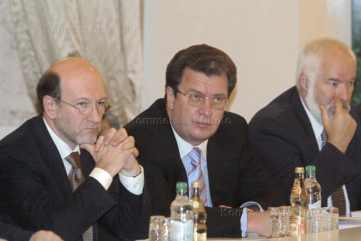 Russian defence minister Sergei Ivanov (left), russian finance minister Alexei Kudrin (centre) and presidential chief of staff Alexander Voloshin (right) took part in the meeting of the High State Council of the Russia-Belorussia Union. The event was held in the Kremlin.