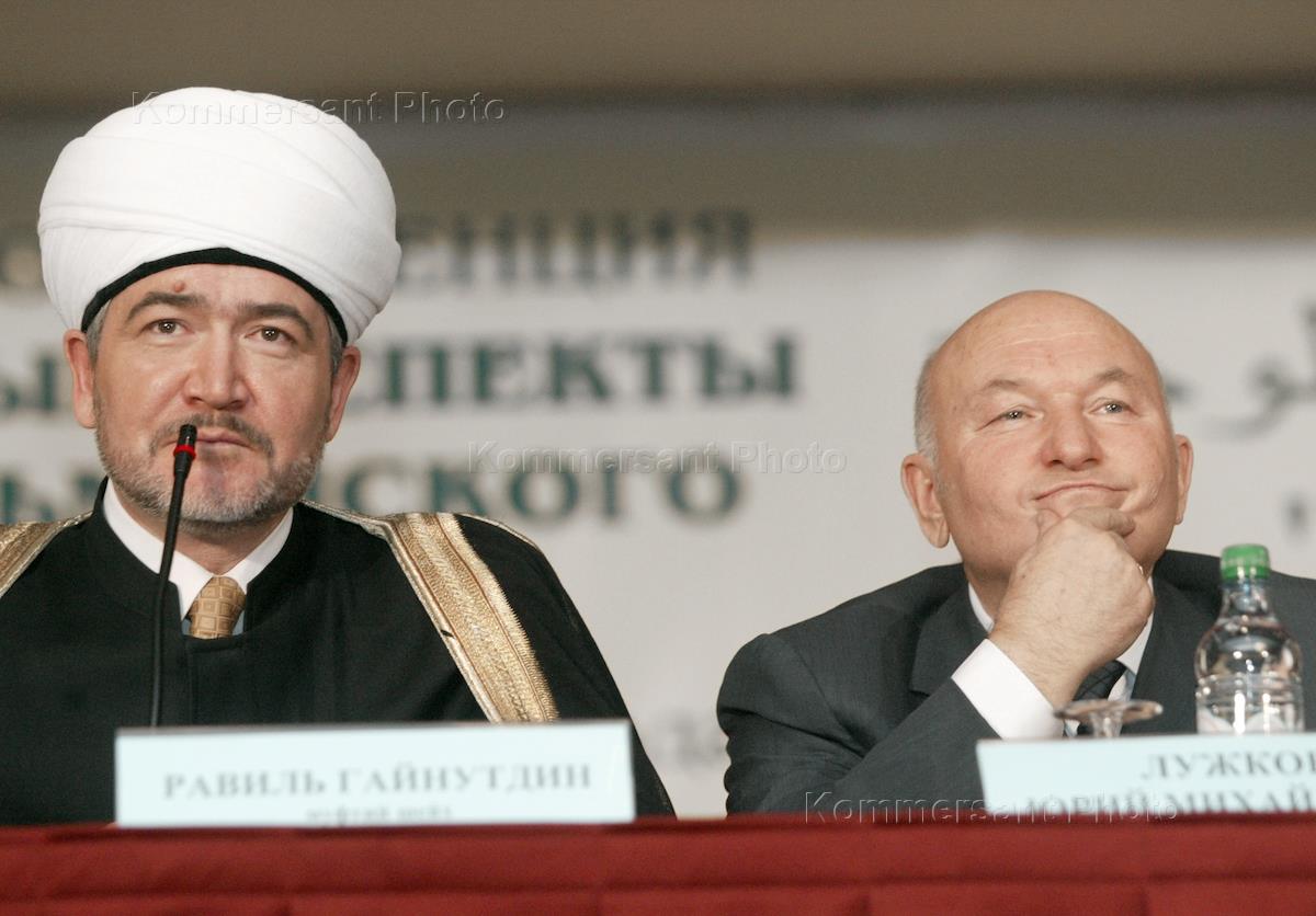 Leader of Russian muslims, Sheikh Ravil Gaynutdin (left) and Moscow Mayor Yury Luzhkov (right) take part in the conference headlined 'Civilisational Aspects of Muslim Unity'. The conference was held in the Renaissance Moscow Hotel.