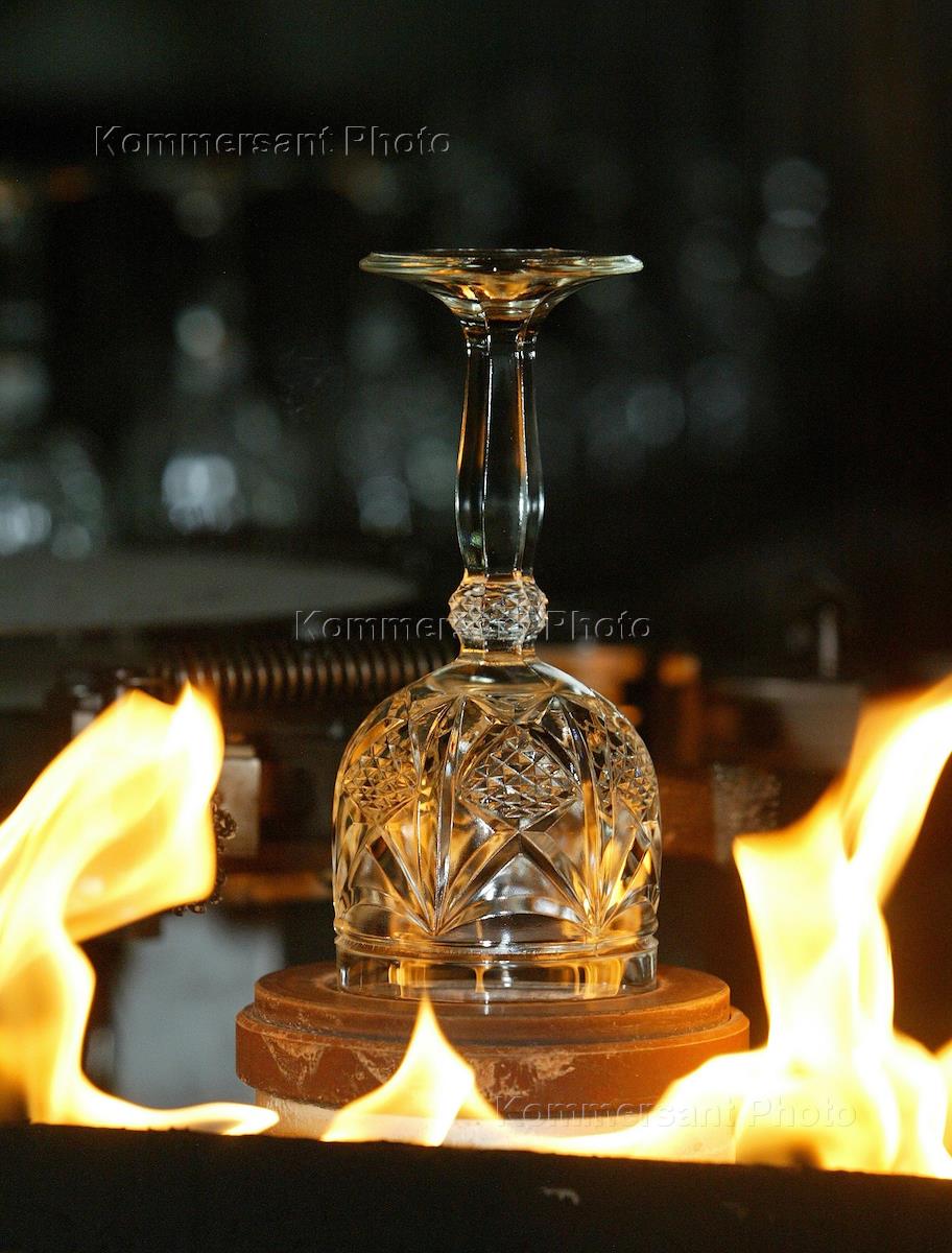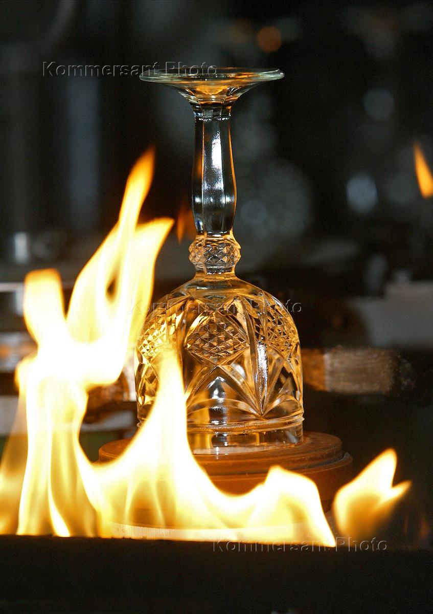 A chrystal wine glass undergoes fire treat at the chrystal plant in the town of Gus-Khrustalny, east of Moscow.