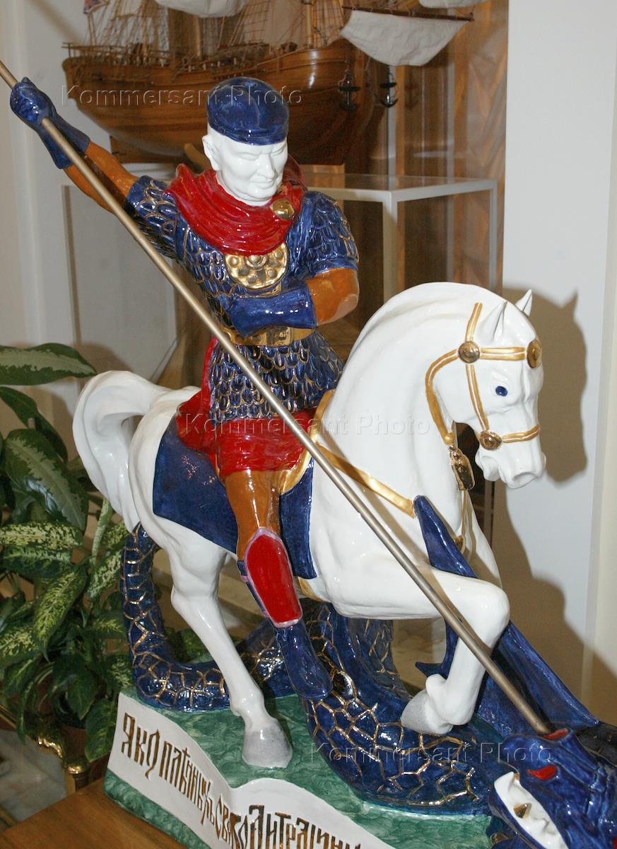 A porcelain statue "Georgy Victorious" with the Moscow Mayor head Yury Luzhkov.