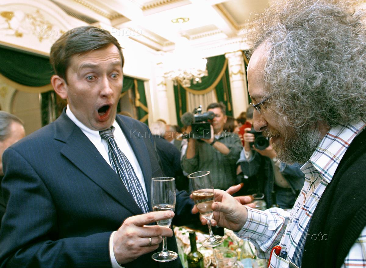 Presidential economic adviser Andrei Illarionov (right) and chief-editor of the "Echo of Moscow" radiostation Alexei Venediktov (left) took part in the 13th anniversary celebrations that was held in the "Praga" restaurant.