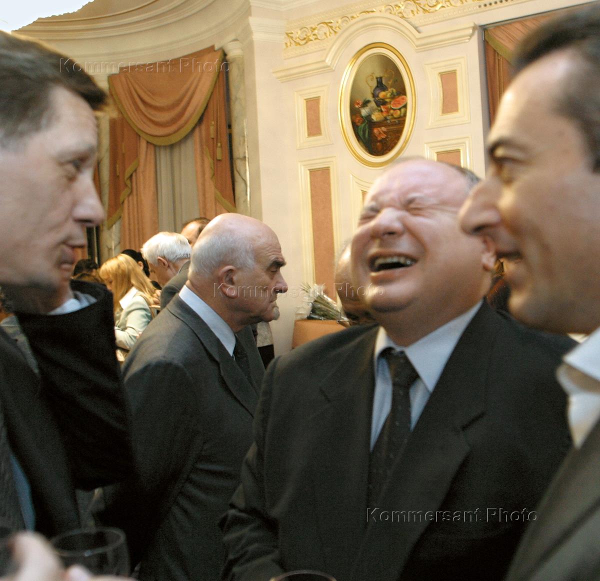 The State Duma committee on budget and taxes chairman Alexander Zhukov (left), economist and science director of the State University - Higher School of Economics Euvgeny Yasin (second from the left), director of the Transitive Economics Institute Egor Gaidar (second from the right) and the State Duma committee on budget and taxes member Valery Draganov (right) took part in the 13th anniversary celebrations that was held in the "Praga" restaurant.