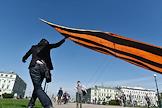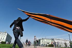 Народные гуляния в День Победы. Запуск воздушного змея в цветах Георгиевской ленты.