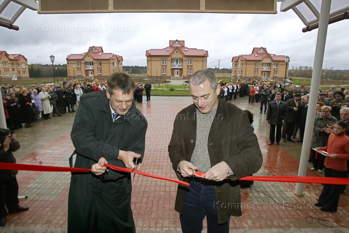 Chairman of the oil company YUKOS Mikhail Khodorkovsky (right) took part in the opening ceremony of the children's house.