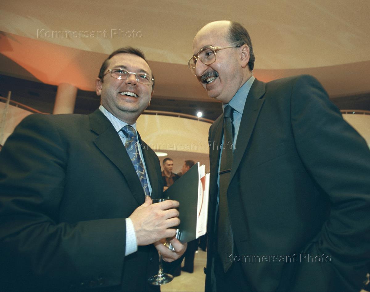 Chairman of the "RosBusinessConculting" (RBC) Yury Rovensky (left) and chairman of the board of directors of the "Wimm-Bill-Dann" company David Yakoboshvili (right) attended the reception in honour of the best russian managers "Flagmans of russian business" that was held in the International Music House.