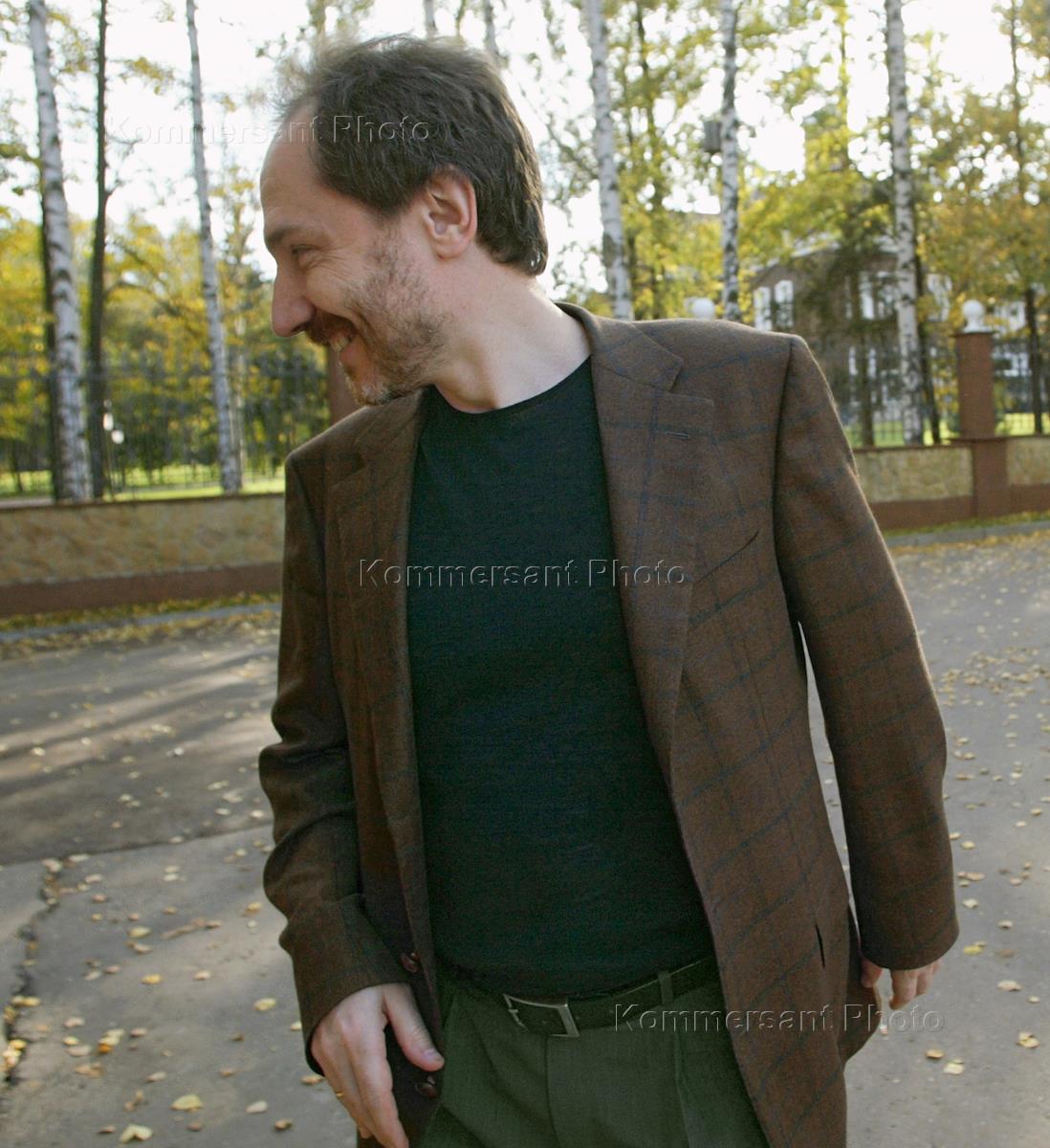 Заместитель председателя правления НК ЮКОС Василий Шахновский у дверей офиса компании в Жуковке, во время обыска Генеральной прокуратуры России.