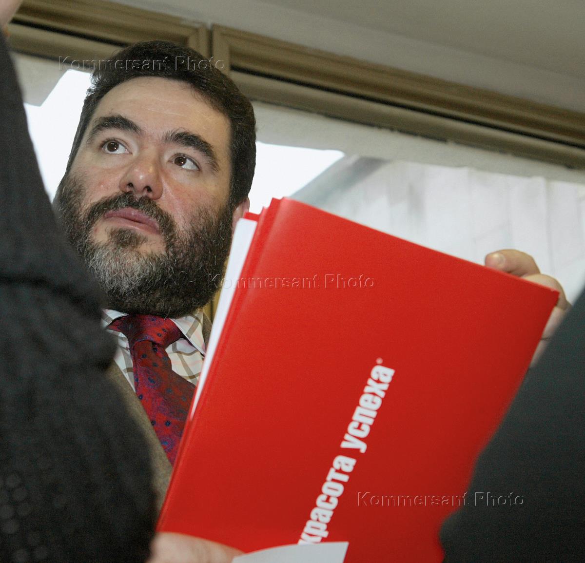 Глава компании "Боско ди Чильеджи" в России Михаил Куснирович на пресс-конференции, посвященной подписанию Олимпийского комитета России и Bosco di Ciliegi спонсорского соглашения на проведение XXVIII Олимпиады 2004 года в Афинах и XX зимних Олимпийских игр 2006 года в Турине.